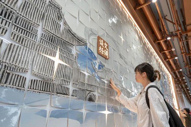 ▲蟠祥路·国家会计学院站以“金汇虹桥・律动蟠龙・一站一景”为设计脉络,萃取祥龙灵姿转化为建筑动感流线,将蟠龙古镇的文化基因融入现代建筑肌理,成为承载地域文化的“地下艺术展厅”。